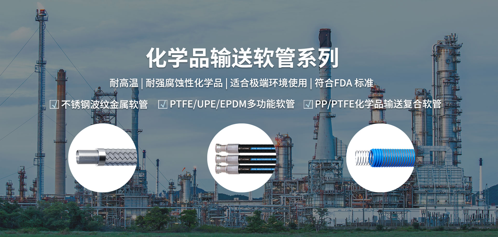 化學品輸送軟管適用于輸送多種腐蝕性物質(zhì)如酸性及堿性溶劑等。其超強耐腐蝕的特性使其成為石油化工、危險液體運輸?shù)刃袠I(yè)的品質(zhì)之選。